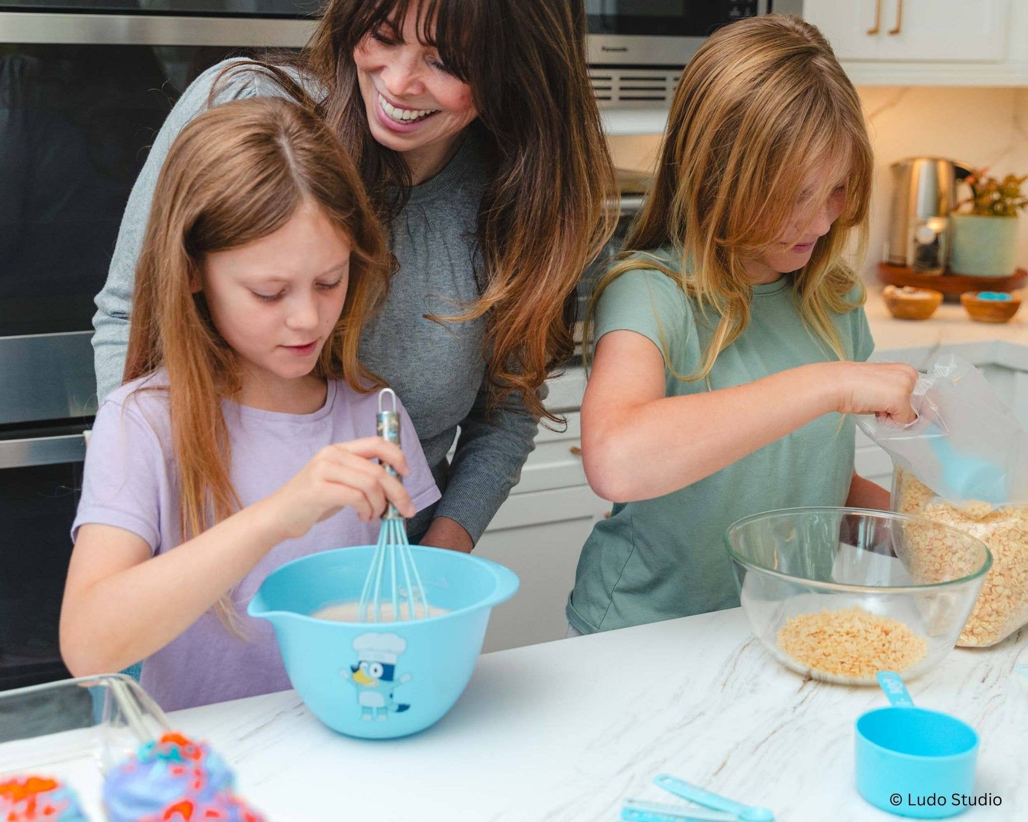 Get ready for fun in the kitchen with Bluey and her very own cooking set! This starter set for real kitchen use makes it easy for young chefs to measure and mix, so they can gain confidence stirring up their own culinary creations.
